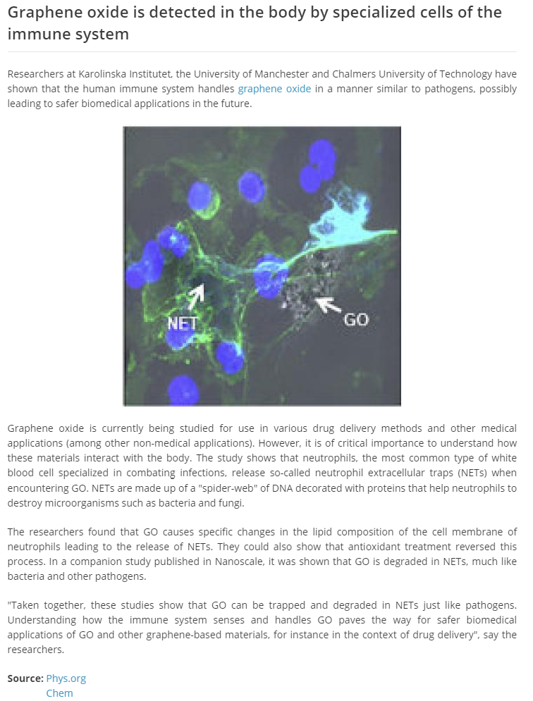 Taken together, these studies show that GO can be trapped and degraded in NETs just like pathogens. I want to tell you that we have published in our website at least 70 studies that reflect everything we are saying and manifesting here.
